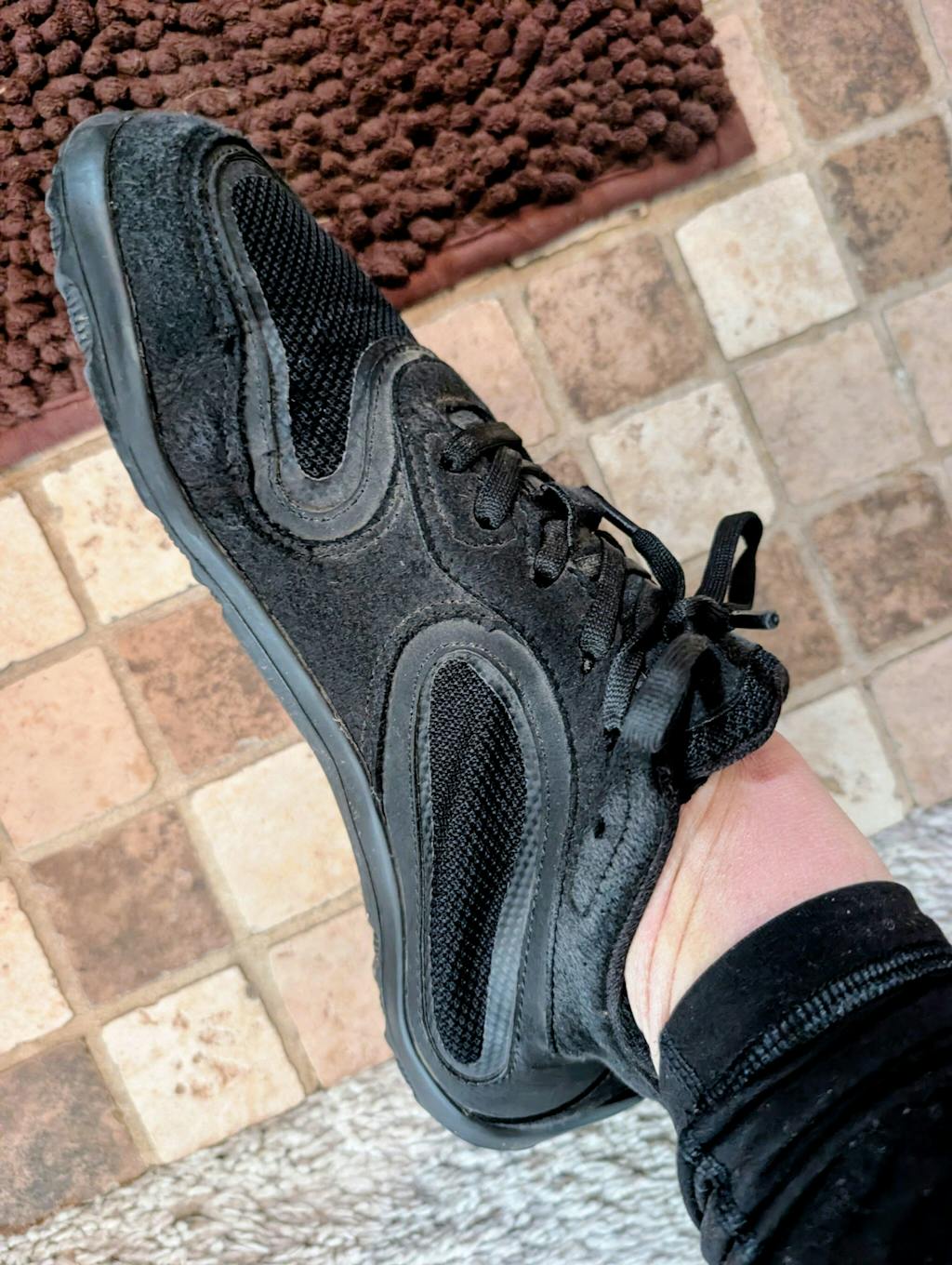 - Foot-shaped wide toe box